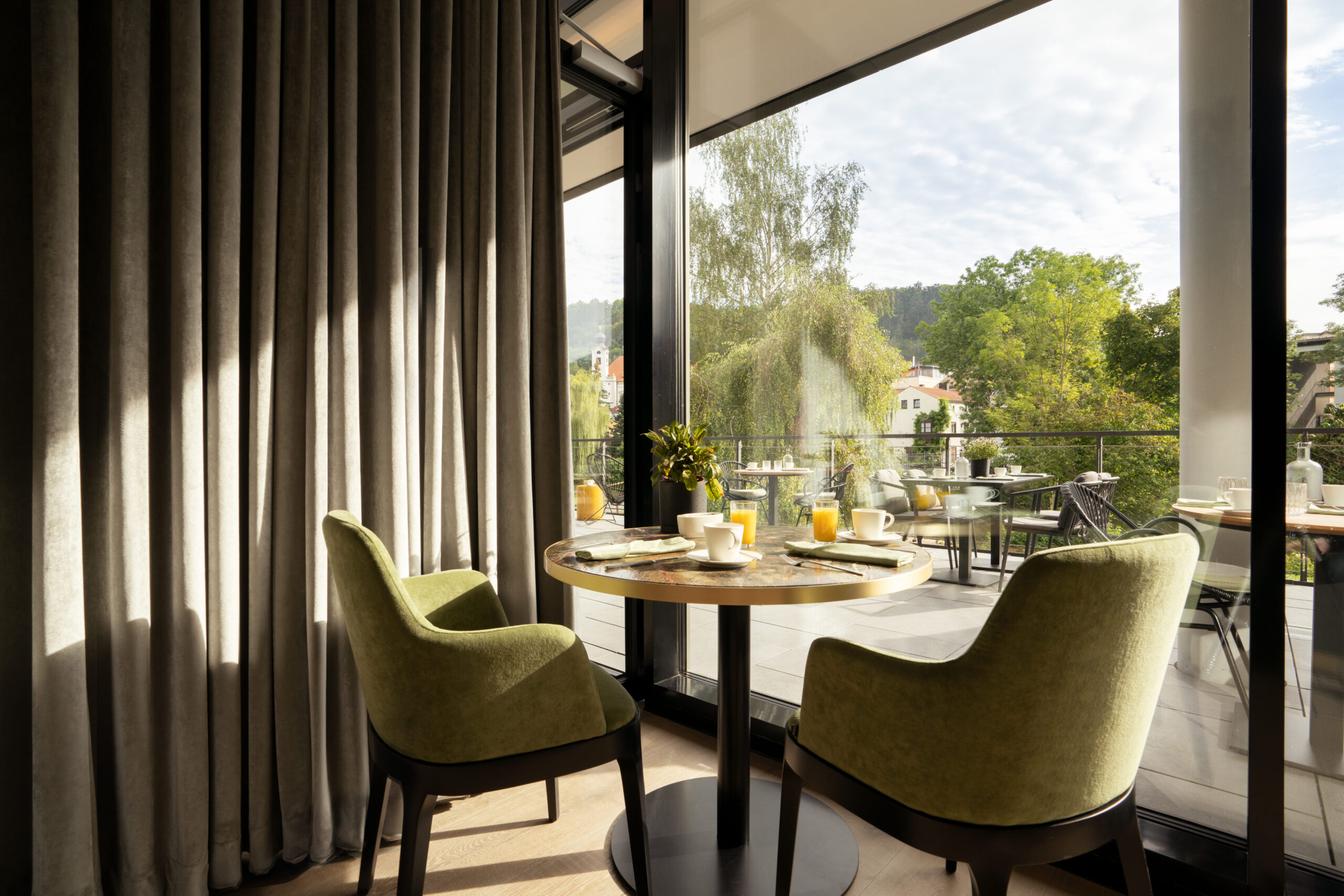 Ein idealer Ausgangspunkt, um diese Vielfalt zu erleben, ist das Designhotel DAS ALTMÜHLTAL, mitten in Eichstätt. Das Haus verbindet moderne Einrichtung mit einer entspannten Atmosphäre. Hier treffen Komfort und Regionalität aufeinander, Rückzug und Erlebnis, Leichtigkeit und Genuss. So entsteht ein Rückzugsort, der sowohl Erholungssuchende als auch aktive Entdecker anspricht. Die Zimmer und Studios präsentieren sich hell, stilvoll und großzügig, mit einem klaren Design, das Ruhe ausstrahlt und zugleich viel Platz für Paare wie Familien bietet. Hochwertige Materialien, ein behagliches Ambiente und der Blick ins Grüne machen das Ankommen besonders angenehm.