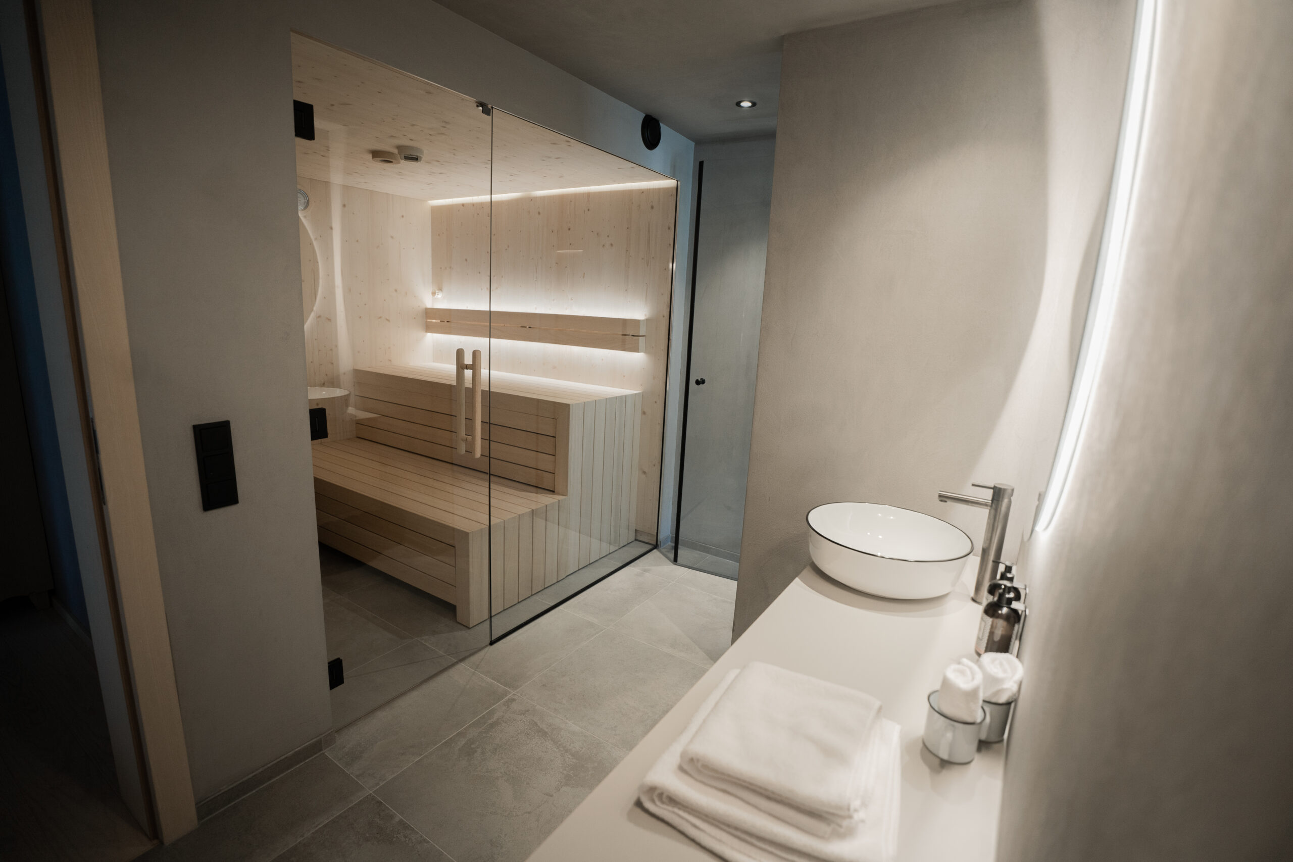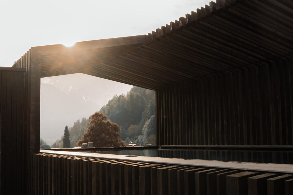 Kupferelemente schimmern im Wasser, während man durch den Pool gleitet, und auch die Saunen in AMRAIs Stólla erinnern an die regionale Bergbautradition. Im Maisäß-Spa zieht es Ruhesuchende nicht nur auf den Dachgarten mit 360° Bergpanorama, sondern auch zum „Gipfelsee“ genannten Infinity Sky Pool, in dem den Gipfeln der Verwall- und Rätikongruppe entgegengeschwebt wird.