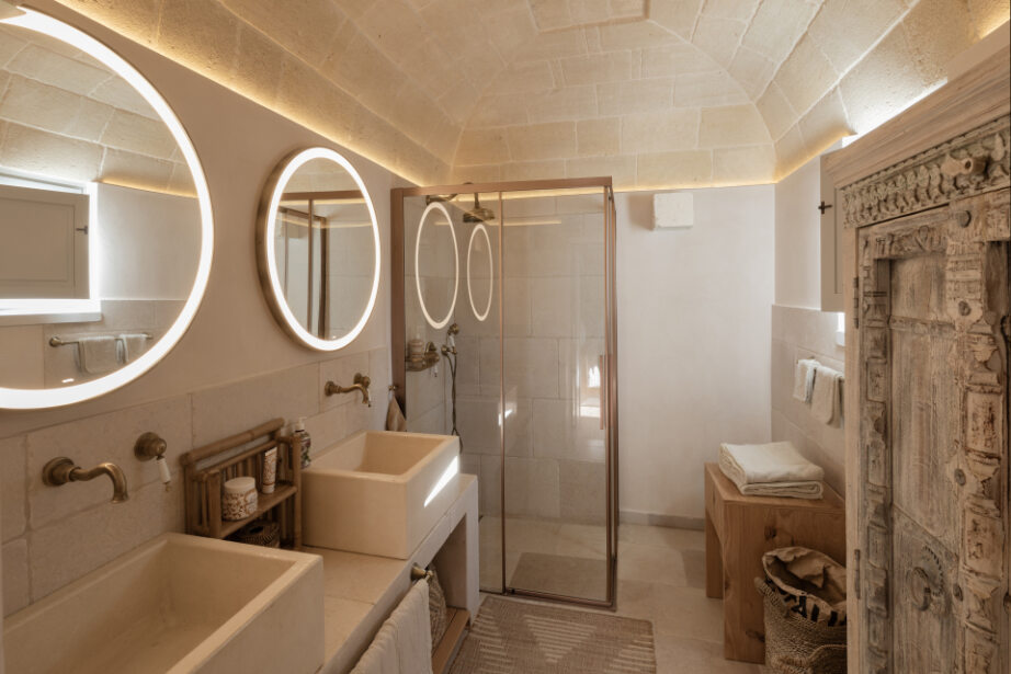 Gebucht wird die ganze Villa: Drei geräumige Schlafzimmer mit En-Suite-Bädern, lichtdurchfluteter Wohnraum, eleganter Essbereich, schattige Pergola, Outdoorküche mit Bar und großem Esstisch, Infinity-Pool. Das reicht für insgesamt sechs Personen, die sich hier nach Bedarf verwöhnen lassen können: Auf Wunsch reinigt das Casa Cupido Team die Villa täglich oder nur einmal pro Woche, füllt den Kühlschrank mit lokalen Köstlichkeiten, stellt tolle Tipps aus der Umgebung zusammen oder organisiert eine private Tour. Massage, Flughafentransfer, eine schöne Weinauswahl – alles machbar. Wer möchte, lässt sich von Chefkoch Angelo mit einem feinen apulischen Dinner verwöhnen.
