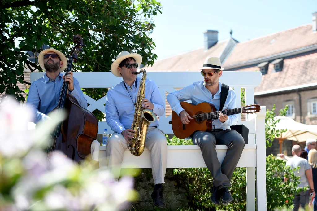 Live-Musik verleiht dem Gelände eine besondere Leichtigkeit: Swing- und Jazzensembles sorgen für stilvolle Klänge, während Jagdhörner und Dudelsackspieler dem Fest eine traditionsreiche Note geben.