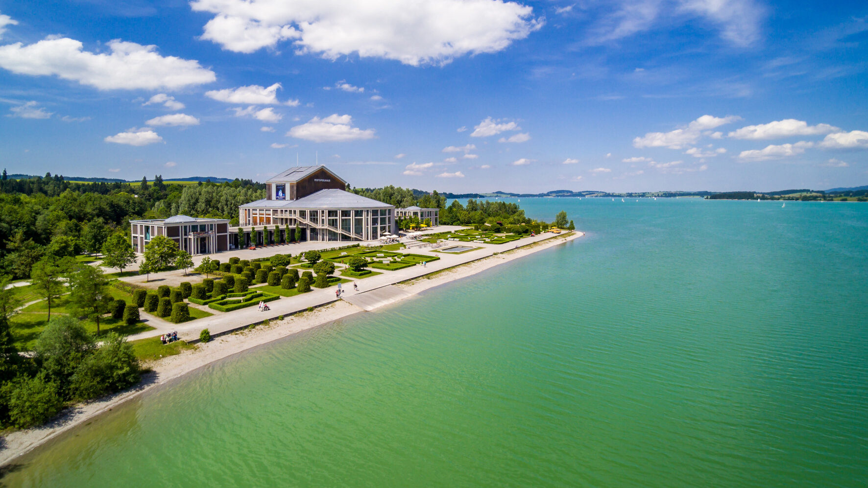 Eingebettet in eine malerische Landschaft mit majestätischen Bergen, tiefblauen Seen und dem märchenhaften Schloss Neuschwanstein, liegt das Festspielhaus Neuschwanstein in Füssen am Forggensee. Das Festspielhaus verfügt über eine der größten und modernsten Drehbühnen Europas mit integriertem 90.000 Liter Wasserbassin. Hier werden Träume Wirklichkeit! Das legendenumrankte Leben des bayerischen Königs, die Geschichte(n) der großen Ära der Luftschifffahrt und viele andere traumhafte Geschichten!