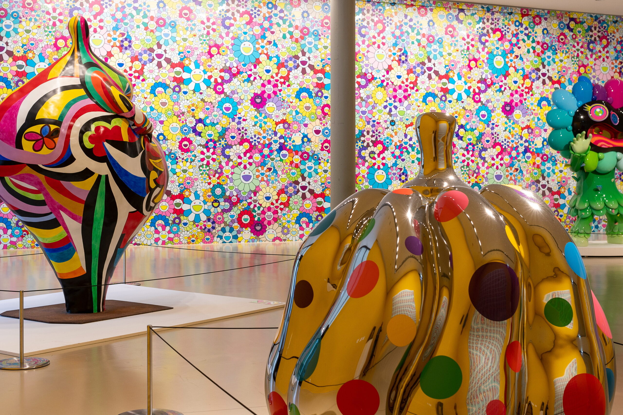 Werke von Niki de Saint Phalle, Yayoi Kusama und Takashi Murakami gemeinsam in einer großen