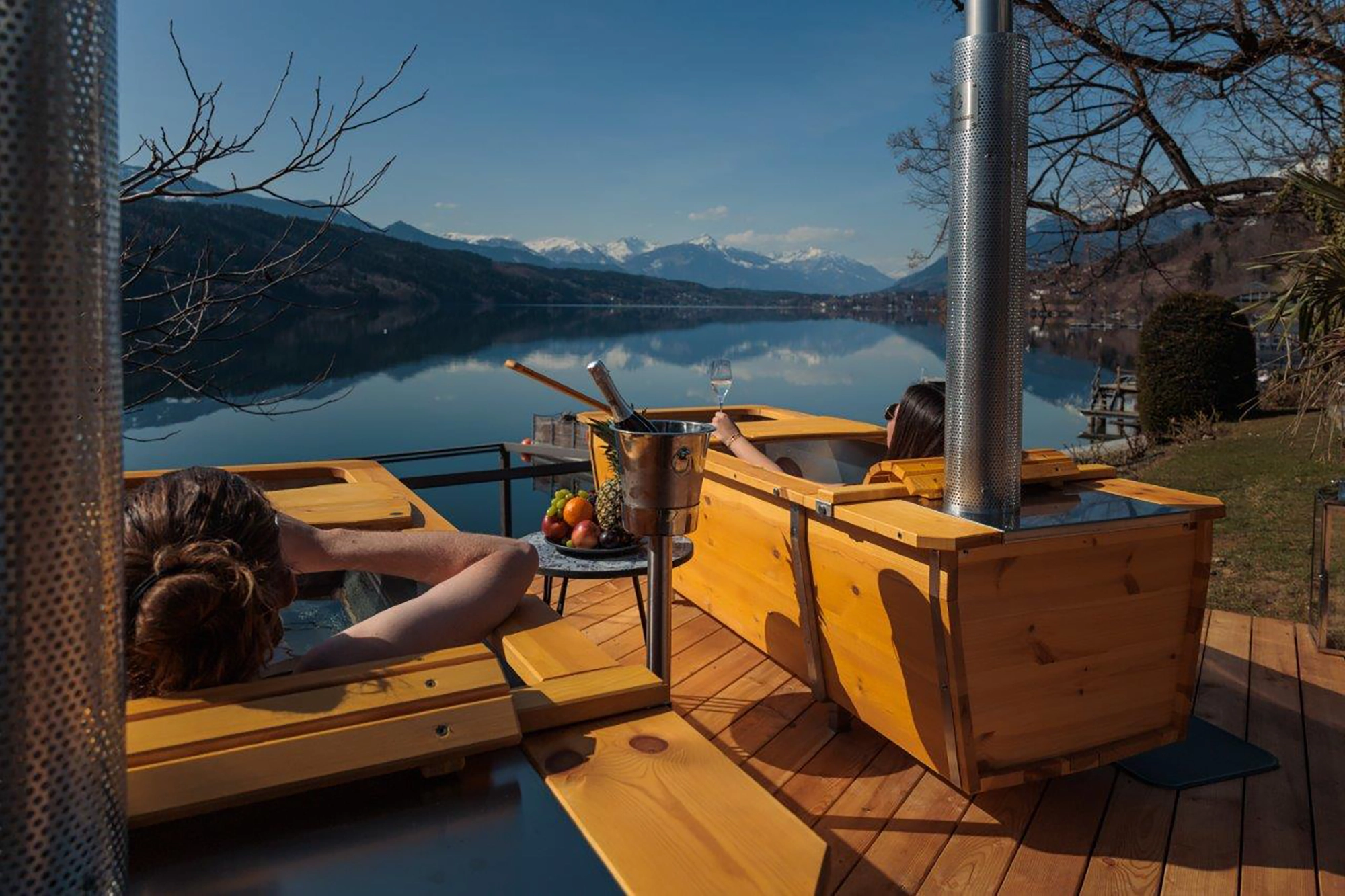 Hausgäste der Villa Postillion am See sowie des Familienhotels Post können zwischen zwei Formaten wählen: Beim „Sundowner“ von 16 bis 18 Uhr steht das goldene Licht des späten Tages im Mittelpunkt, beim „Sterndal-Schauen“ von 20 bis 22 Uhr die besondere Atmosphäre einer beginnenden lauen Sommernacht. Inbegriffen sind jeweils ein Bad in den holzbeheizten Wannen, flauschige Handtücher sowie zwei Gläser Aperitif, Cocktail oder Qualitätswein.