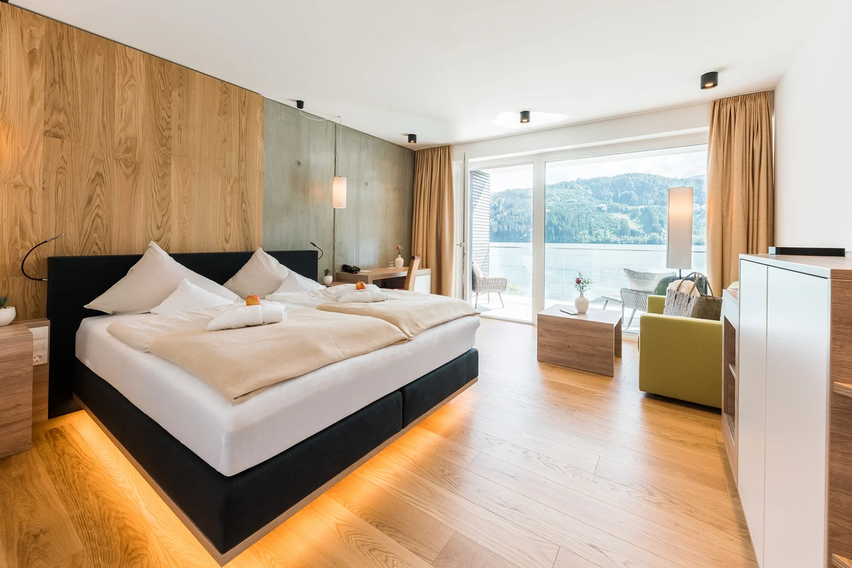 Mit dem neuen SeeBad bekommt diese Auszeit nun eine besonders stimmungsvolle Dimension. Zwei fest installierte, holzbeheizte Outdoor-Wannen auf einem privaten Deck direkt am Wasser machen Baden hier zum neuen Ritual. Warmes Quellwasser, der Duft von Zitrone und Rosmarin, das sanfte Licht des Nachmittags oder der Blick in den Abendhimmel über dem See schaffen einen Rückzugsort, der Sommerfrische zeitgemäß interpretiert.